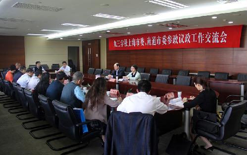 座谈交流会在市行政中心综合楼602会议室举行。会上,陈伯森副主委介绍了社市委近年来在加强课题调研、提案、社情民意信息等参政议政工作方面采取的主要做法及组织建设有关情况。九三学社上海市委参政议政部副部长戎卫栋、社会服务部部长阎凌云、电气委员会主委朱建伟分别就社上海市委及电气委员会在完善参政议政工作机制和人才队伍建设等方面的经验做法作了介绍,并就“智慧交通”课题进行了交流探讨。