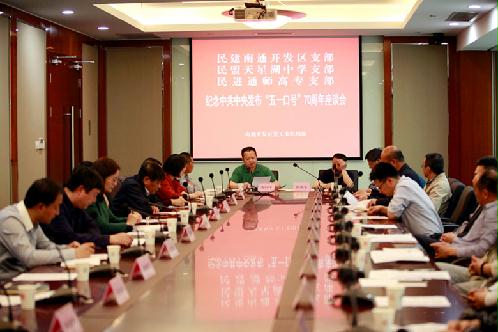4月20日民建南通开发区支部召开纪念中共中央“五一口号”发布70年座谈会,邀请了民盟天星湖中学支部、民进通师高专支部共同纪念统一战线史上这一伟大盛举。南通经济技术开发区党工委委员、组织部部长曹海锋,民建南通市委副主委许映斌,民进南通市委会副主委徐宾以及民盟南通市委组织部部长曹晓东参加会议。民建南通开发区支部主委成剑峰主持会议。