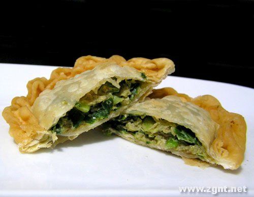 沿自清乾隆年间袁枚所著《随园食单》。韭菜盒子一般选春季头刀韭菜作馅,适宜于春季食用。该制品表皮金黄酥脆,馅心韭香脆嫩,有不用油酥而酥松,不用米粉而糯软之效,是适时佳点。