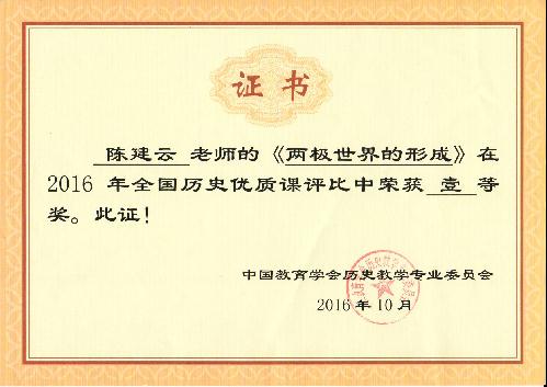 10月28-29日,中国教育学会历史教学专业委员会2016年学术年会在河南省安阳市举行。全国历史优质课评比是学术年会的一项重要活动,民盟江苏省南通中学支部主委、南通中学副校长陈建云老师执教的《两极世界的形成》在评比中荣获一等奖。