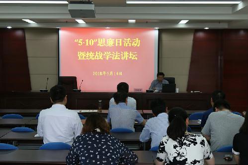 为深入学习习近平新时代中国特色社会主义思想和党的十九大精神,全面落实中央纪委二次全会和省、市纪委全会部署,切实加强机关党员干部廉洁教育,营造思廉、知廉、醒廉、警廉的浓厚氛围,5月14日,市委统战部结合最近党规党纪要求,举办统战系统全体机关干部“5·10思廉日”活动暨统战学法讲坛。
