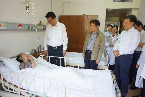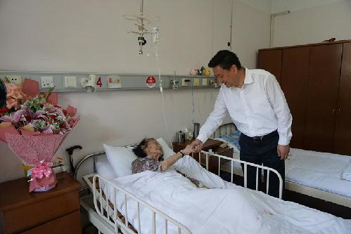 5月24日上午,市委副书记、统战部部长张兆江前往市老年康复医院看望慰问致公党市委原主委张柔武。张兆江副书记向主治医生详细了解张老有关病情及治疗进展,叮嘱医院要高度重视,制定好治疗方案,并尽心尽力关心好、照顾好、服务好。张书记站在病床前又仔细询问了张老目前身体和生活情况,希望张老积极配合治疗,早日恢复身体健康。同时,感谢张老一直以来为我市多党合作事业和经济社会发展所作出的贡献。最后,张书记握着张老手说,今年您100岁了,等您康复后我们一起为您祝寿。