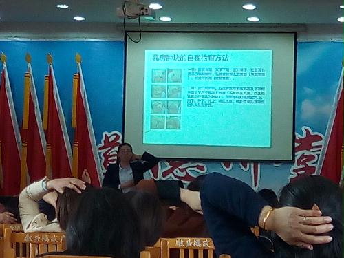 花老师以形象的图片、鲜活的事例,详细讲解了女性生殖系统常见妇科疾病的预防以及乳房癌、宫颈癌的日常自查、预防与治疗的相关知识进行了专业讲解,并对妇女更年期的有关知识也进行了辅导,提醒广大女性要加强自我健康保护和预防意识,做到疾病早预防、早发现、早治疗,不断提升妇女同胞的生活质量和幸福指数,同时呼吁广大妇女同胞关爱自已的身体健康,定期做一些妇科检查,预防疾病的发生。